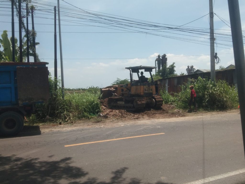 Warga mendesak aparat penegak hukum wilayah Kecamatan Menganti turun tangan memeriksa legalitas proyek yang dinilai meresahkan dan membahayakan pengguna jalan. (Dwa)