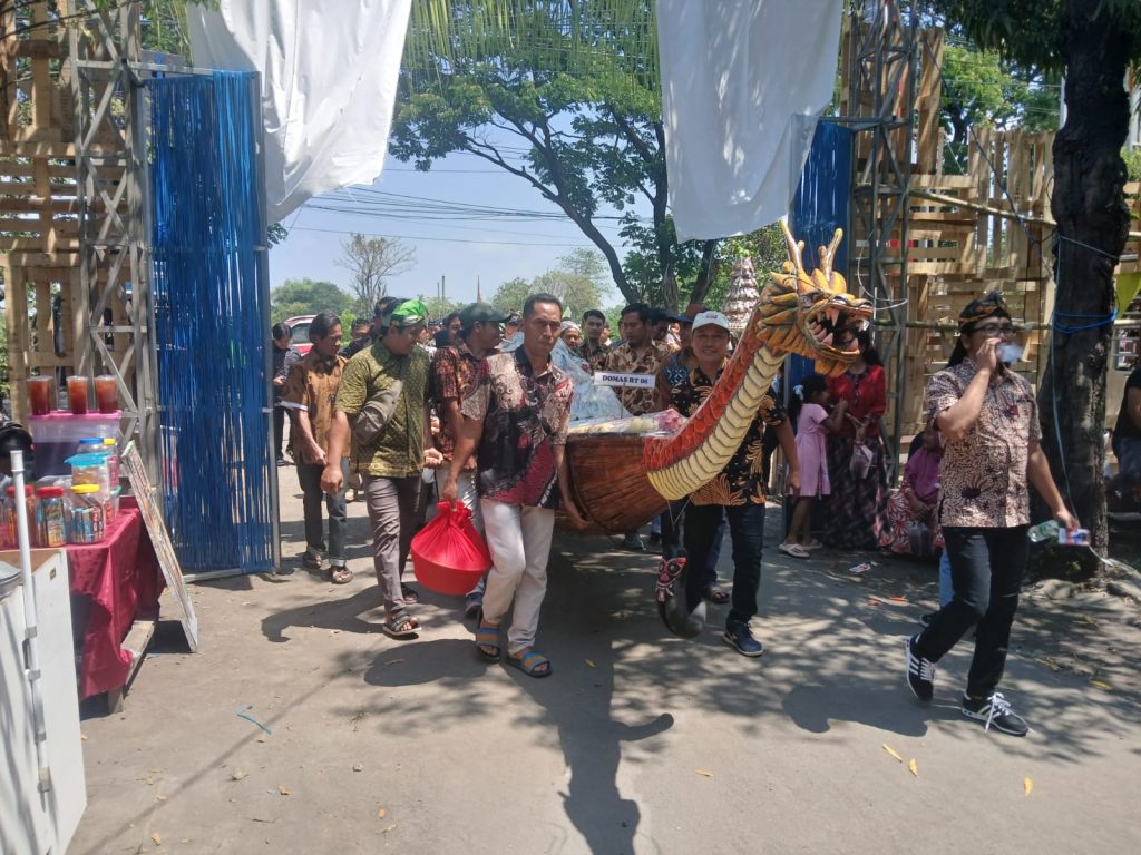 Kirab tumpeng ini diawali dengan doa bersama yang dipimpin tokoh agama setempat. Setelah itu, Kepala Desa bersama perangkat desa dan warga mengarak tumpeng raksasa serta gunungan hasil bumi ke lokasi acara. Suasana semakin semarak dengan iringan kesenian tradisional dan partisipasi kelompok masyarakat dari berbagai RW.