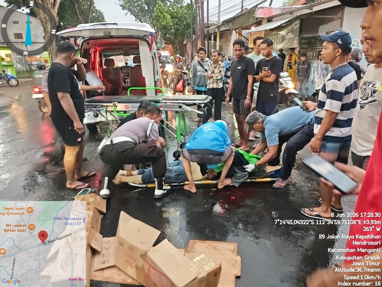 Kecelakaan lalu lintas terjadi di Jalan Raya Hendrosari, Desa Hendrosari, Kecamatan Menganti, Kabupaten Gresik, Kamis (8/1/2026) sekitar pukul 16.45 WIB. Peristiwa nahas tersebut mengakibatkan satu orang pengendara sepeda motor meninggal dunia di tempat kejadian perkara (TKP).