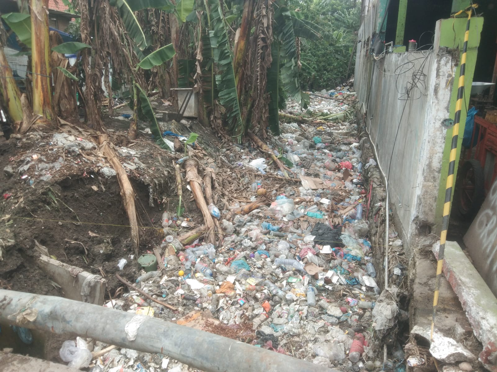 Penumpukan sampah tersebut membuat aliran air tersumbat dan tidak dapat mengalir dengan normal. Di beberapa titik, kondisi sampah yang menggunung bahkan menutup hampir seluruh permukaan selokan. Situasi ini menimbulkan kekhawatiran warga setempat, terutama saat hujan turun.