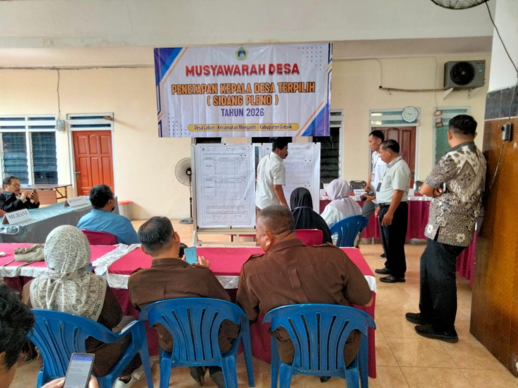 Musyawarah Desa (Musdes) dalam rangka Pergantian Antar Waktu (PAW) Kepala Desa Laban, Kecamatan Menganti, Kabupaten Gresik, digelar melalui sidang pleno penetapan kepala desa terpilih tahun 2026 yang dilaksanakan dipendopo balaidesa Laban kecamatan Menganti kabupaten Gresik, Sabtu (07/03/2026)