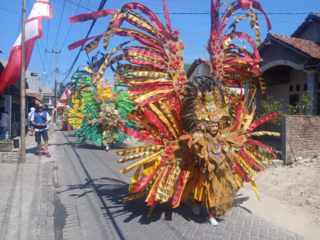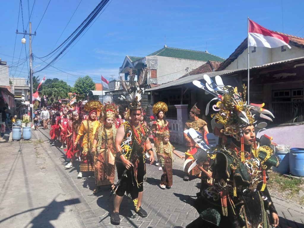 Karnaval diikuti berbagai peserta dari RT, lembaga pendidikan, hingga kelompok seni dan pemuda desa. Mereka menampilkan beragam atraksi serta kostum unik bernuansa perjuangan dan kebhinekaan.