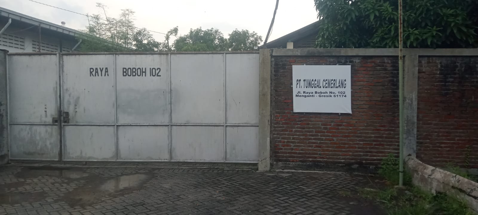 Warga mengeluhkan bau menyengat yang tercium di sekitar Jalan Raya Dusun Gantang, Desa Boboh, Kecamatan Menganti, Kabupaten Gresik, tepatnya di depan area pabrik PT Tunggal Cemerlang.
