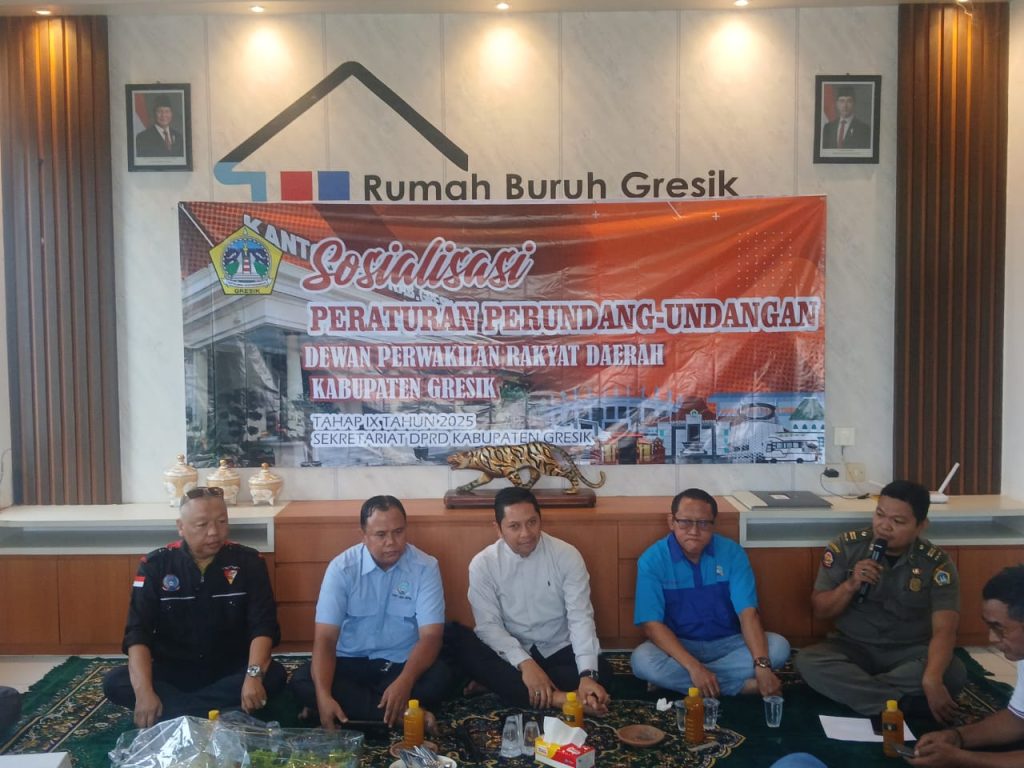 Anggota DPRD Kabupaten Gresik dari Fraksi Partai Persatuan Pembangunan (PPP), Imam Syaifudin, SH, melaksanakan Sosialisasi Peraturan Daerah (Sosper) Tahap IX di Rumah Buruh Gresik, Sabtu (15/11/2025) siang. Kegiatan ini turut menghadirkan Eko Wulyadi dari Satpol PP Gresik sebagai narasumber.