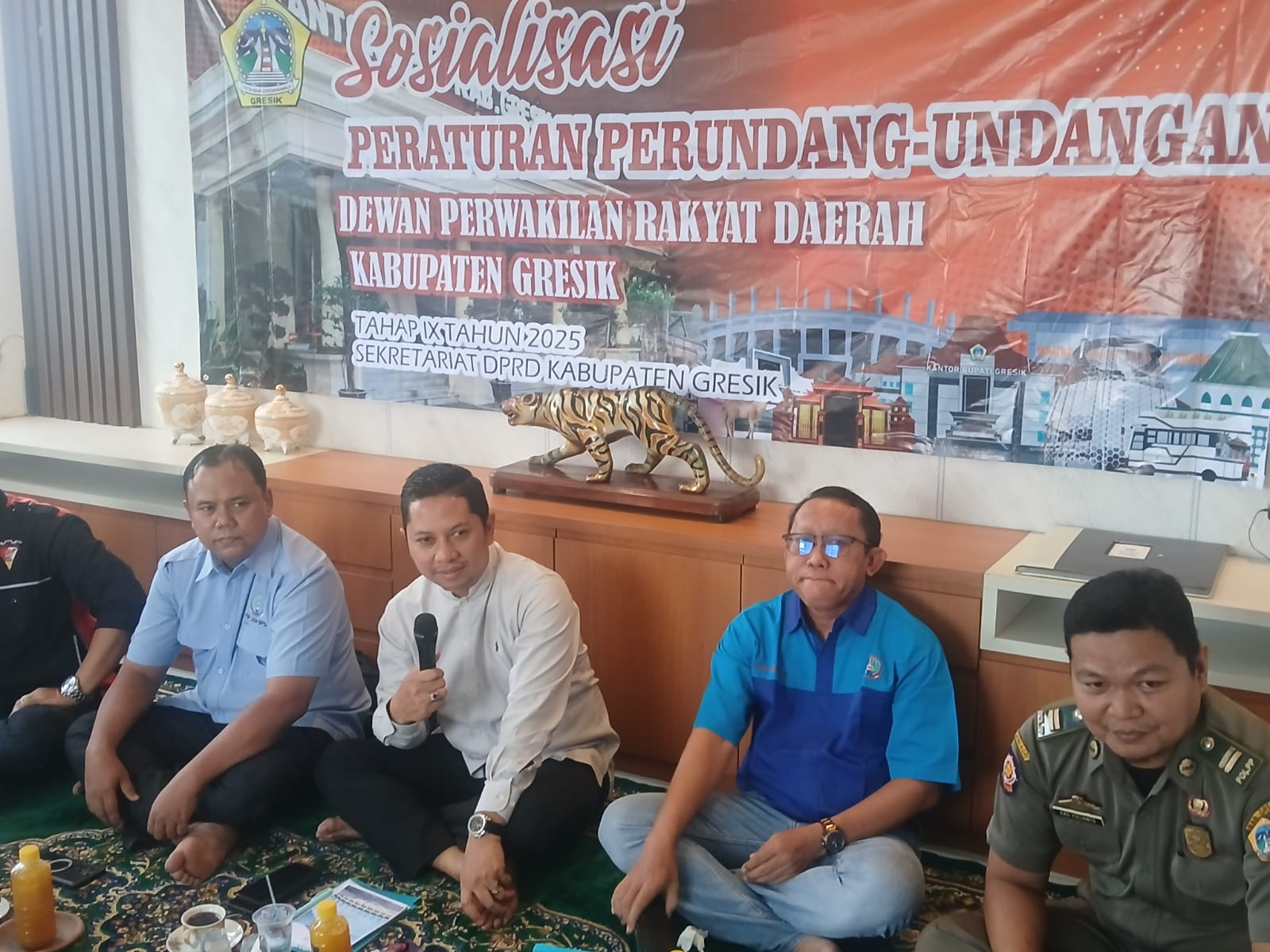 Sebagai narasumber, Eko Yulianto dari Satpol PP Gresik menjelaskan teknis pelaksanaan serta penegakan perda. Ia menegaskan bahwa Satpol PP terus berupaya melakukan pengawasan, penertiban, dan penindakan sesuai aturan yang berlaku.