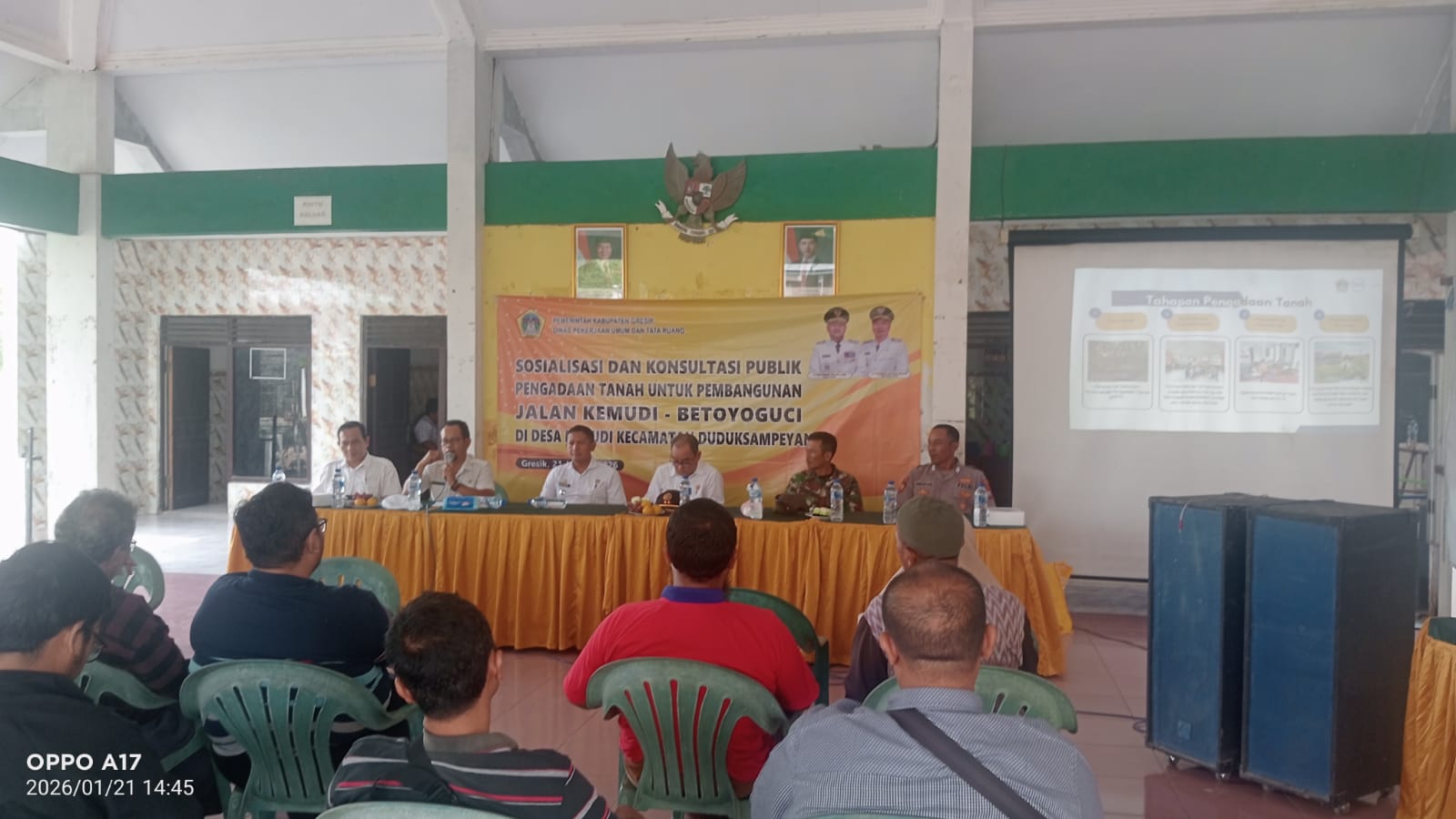 Acara yang digelar di Balai Desa Kemudi, Kecamatan Duduksampeyan tersebut dihadiri oleh jajaran Dinas PUTR, perwakilan Badan Pertanahan Nasional (BPN), Forkopimcam Duduksampeyan, serta puluhan warga pemilik lahan yang terdampak rencana pembangunan.